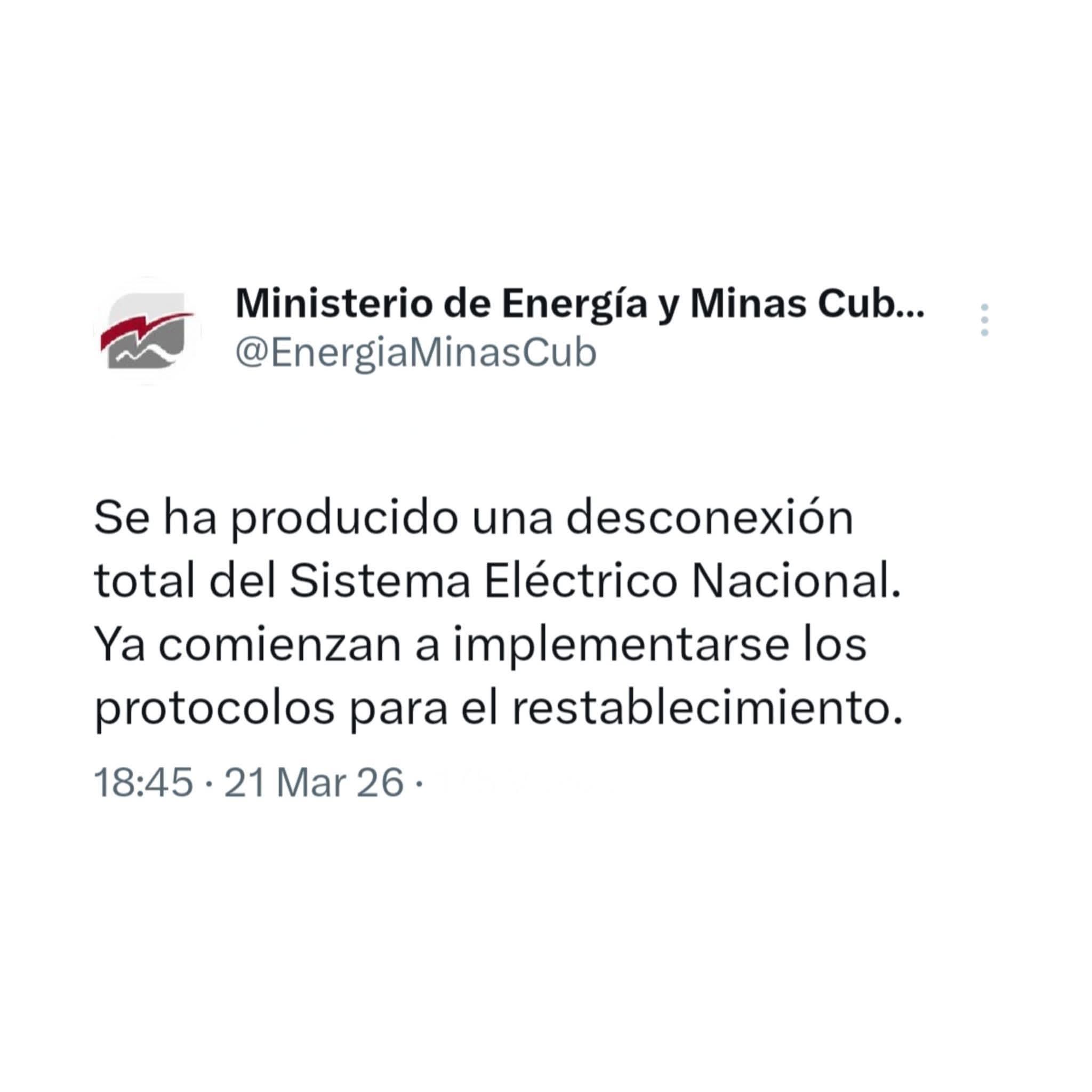 Las Tunas. - Por segunda ocasión en lo que va de año y en menos de 15 días, el Sistema Electroenergético Nacional (SEN) sufrió una desconexión total. El evento, ocurrido...