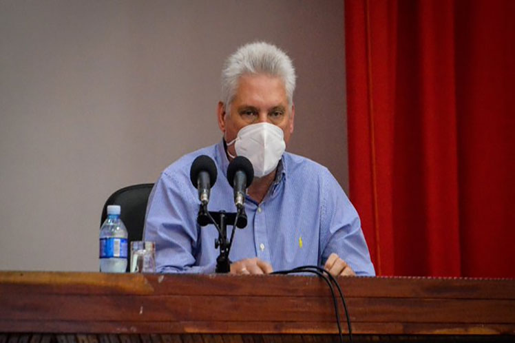 Cuba, El Presidente de Cuba, Miguel Díaz-Canel, llamó hoy en esta occidental ciudad a actuar con mayor rigor y evitar cualquier espacio a la equivocación e incumplimientos en el enfrentamiento contra la Covid-19.