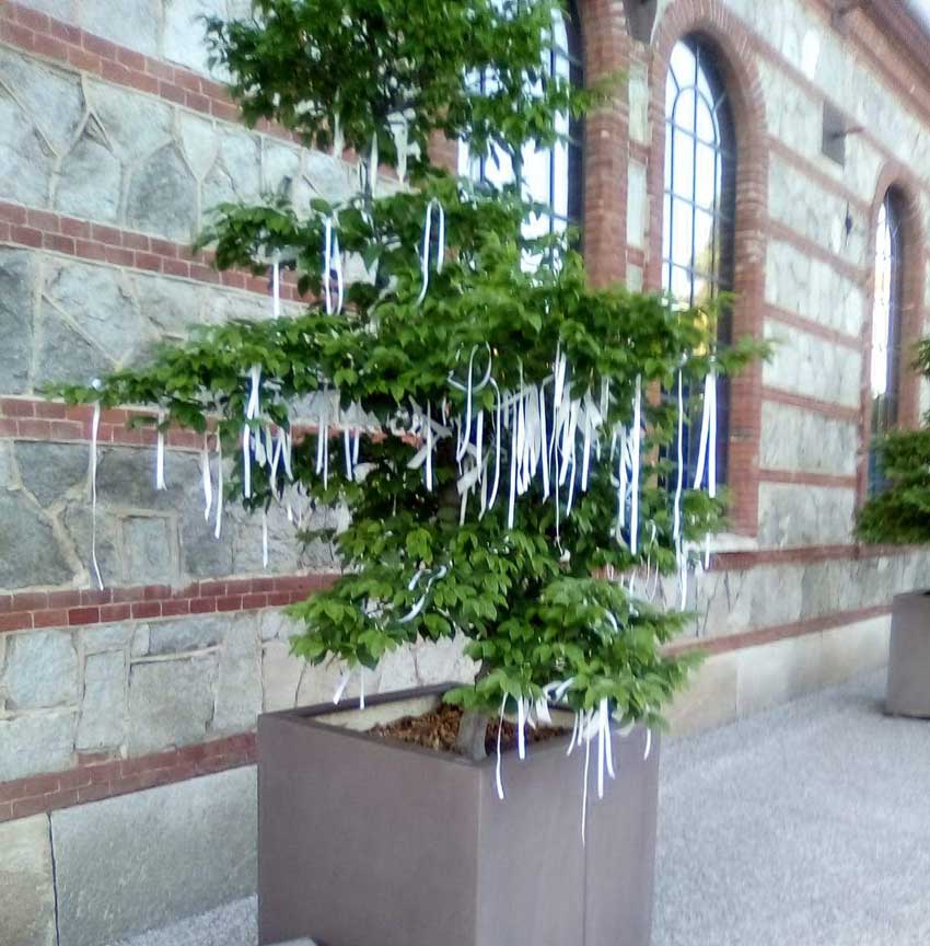 Las Tunas.- Un árbol marca la grandeza de la obra humana. Cual ramas, las cintas blancas que le cuelgan son cada una de las vidas salvadas del nuevo coronavirus, durante tres meses, por la brigada médica cubana del contingente Henry Reeve, en Turín, Italia.