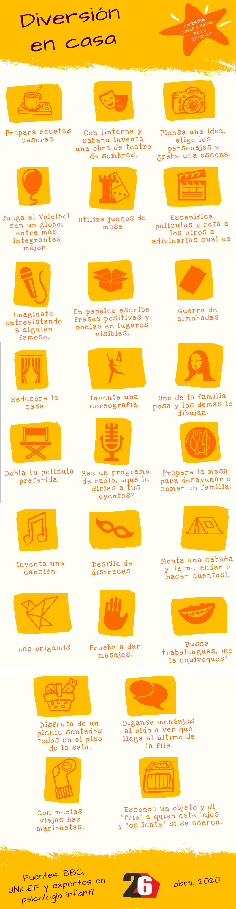 Ahora proponemos 25 actividades para entretener a los pequeños y adolescentes de casa, para que estos días de preocupaciones y temores pasen lo más desapercibido posible para los niños, que son nuestra mayor esperanza.