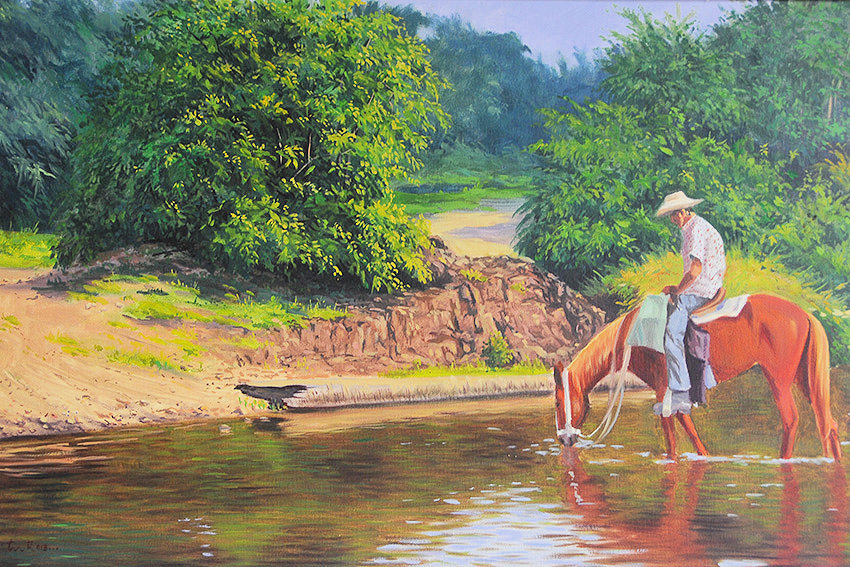 "Realizo el paisaje de diferentes maneras, lo mismo el tradicional (como en esta exposición) que el interpretativo, aunque me gusta más realizarlo como lo veo, ya sea una casa vieja o un árbol destruido. También he experimentado con el retrato, la caricatura, la talla en madera y otras expresiones. Los primeros trabajos que hice en pintura eran figuran humanas. Después me gustó el paisaje urbano y, luego, fui explorando hasta que caí en su vertiente rural, ese que me ha enamorado", dijo el creador.