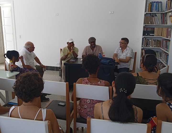 Asimismo, la charla Poesía y experimentación, impartida por Rito Ramón Aroche, con el acompañamiento de Julio Mitjant y Yosvel Hernández, contó con la presencia del ministro de Cultura, Alpidio Alonso, quien exhortó a retomar en todas las provincias el Encuentro de Debate de Talleres Literarios, en sus niveles municipal y provincial, pues a partir de este momento volverá el certamen a escala nacional.