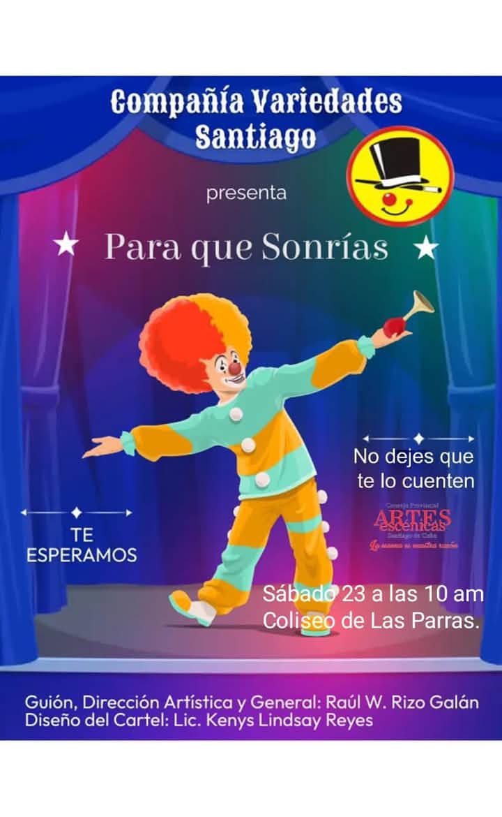 Por otro lado, para los niños se prevé que este viernes, a las 10:00 am, invitados extranjeros lleguen hasta el hospital pediátrico Mártires de Las Tunas con Mi amigo el mago, y otros elencos actúen en las escuelas José de la Luz y Caballero y Eduardo Pérez Sánchez. En igual horario, el sábado, artistas de Villa Clara presentarán el espectáculo Regálame una magia, en el centro cultural Teatro Tuyo. En tanto, otros participantes llegarán a la casa de cultura Eusebio Valera, de Calixto, con Fantasía; y Variedades Santiago compartirá Para que sonrías, en el Coliseo de Las Parras. A esa hora, pero en el teatro Tunas el domingo, la compañía Variedades Santiago presentará Había una vez un circo.