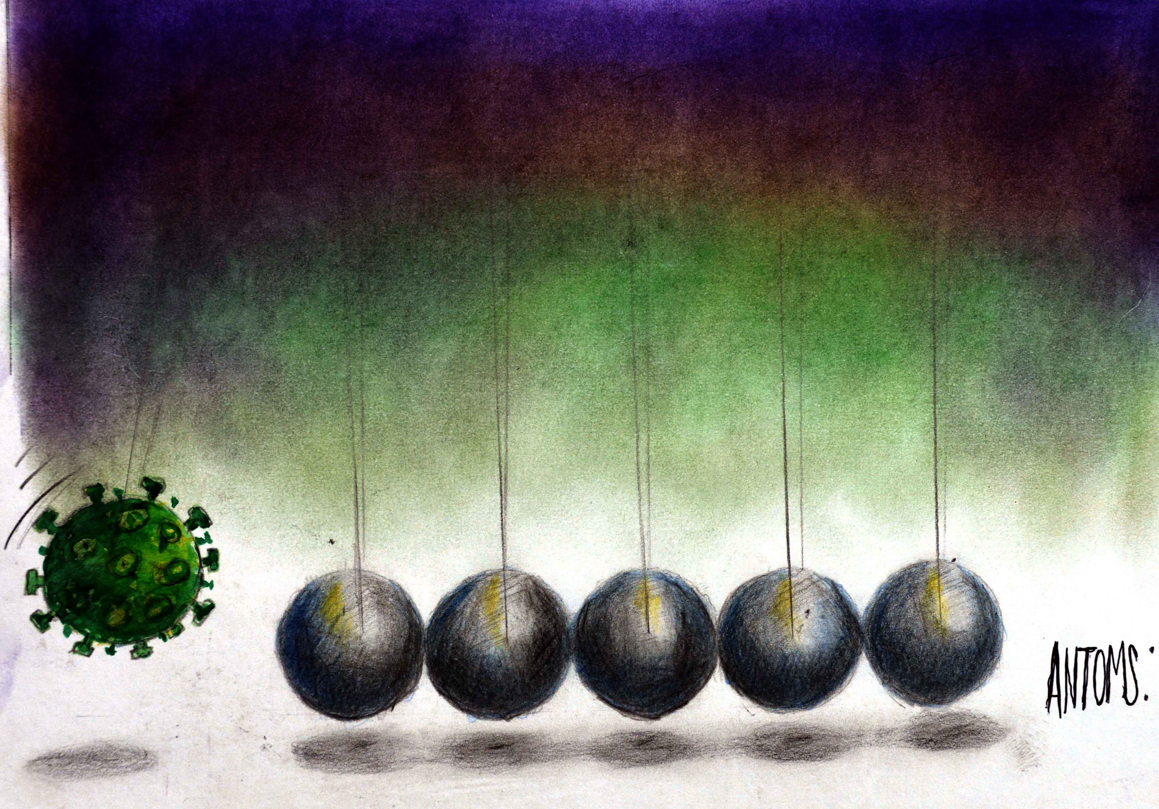 Las Tunas.- “Todo lo que tenga que ver con la existencia humana me motiva a trabajar, pero nunca esperé encontrarme en un año de esta manera: la Covid-19 trajo consigo ese encierro mundial llamado cuarentena”, así comienza su diálogo el experimentado caricaturista Antonio Medina, cuya exposición (online) El 2020 en la mirada de Antoms se exhibe desde hoy en los perfiles institucionales del periódico 26, como parte de la Jornada de la Prensa Cubana.