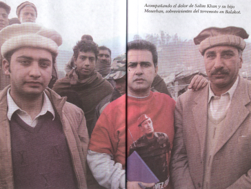 Otro fragmento mágico, aunque desgarrador: “Sugra, de 28 años, me recibe al final de la pendiente y me encuentra husmeando en un improvisado fogón. La carpa de lona está impregnada de hollín. Una cacerola achatada, y hundida a la vez, contiene los restos de un arroz quemado, como única evidencia de alimentación en este dantesco sitio. Sugra vivía en Muzaffarabad, en un lugar conocido como Julalabad. Ahora es una más de las millones de evacuadas, con sus seis hijos a cuestas…”
