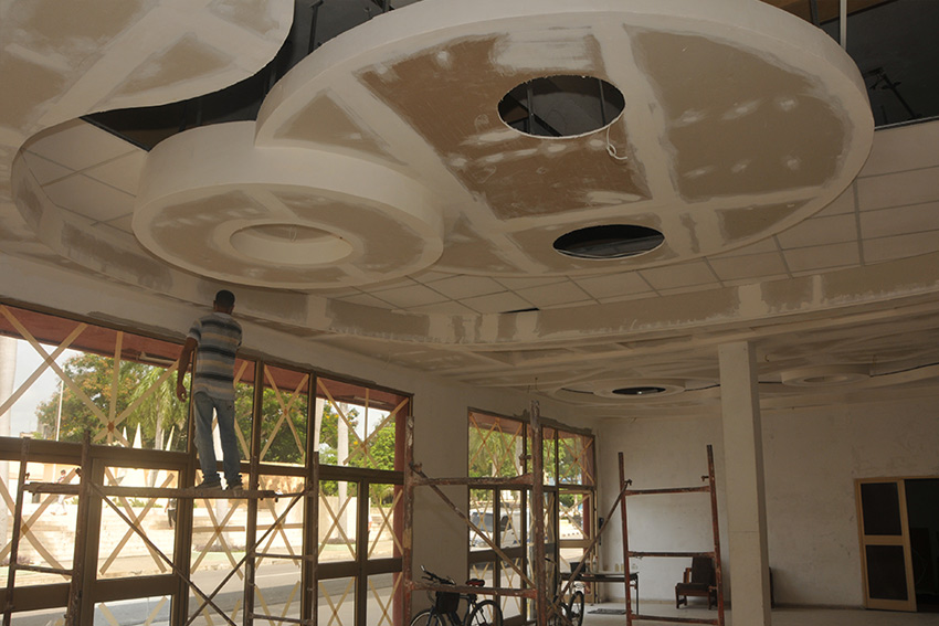“Hemos querido darle un toque de modernidad en los falsos techo con la utilización de nuevas formas, elementos curvos y colores claros, aunque también los combinamos con los grises para dar elegancia. Este es una edificación del movimiento moderno y apostamos por un mobiliario simple. Nos empeñamos en restaurar la madera existente en las paredes y se trabaja en los camerinos, que ya están en fase de terminación.