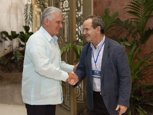 En el encuentro entre el presidente cubano y el secretario general iberoamericano participaron, por la organización, Carlos Blasco Bernaldez, jefe de Gabinete del Secretario General Iberoamericano; y Martín Rivero Illa, coordinador del Espacio Iberoamericano de Cohesión Social y Cooperación Sur-Sur de la Segib.