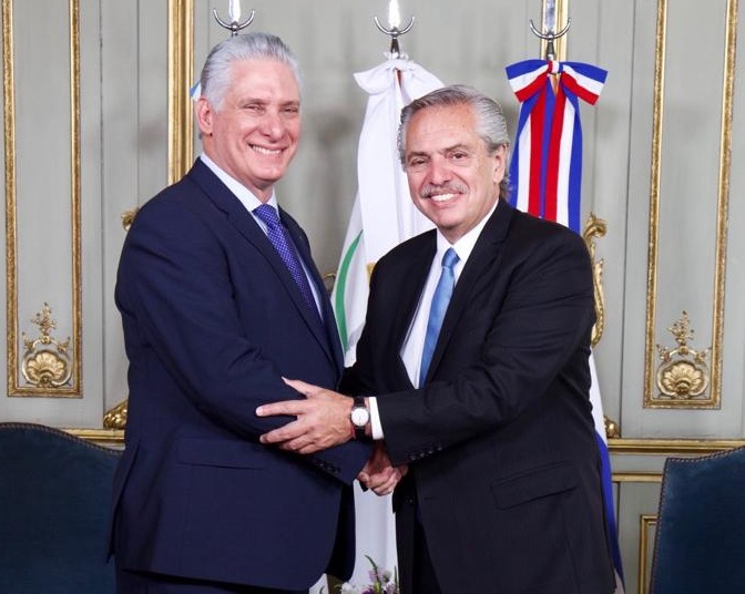 La Habana.- El presidente de Cuba, Miguel Díaz-Canel Bermúdez, de visita oficial en Argentina, se reunió hoy con su homólogo de ese país, Alberto Fernández.