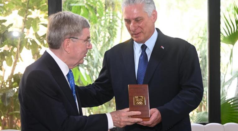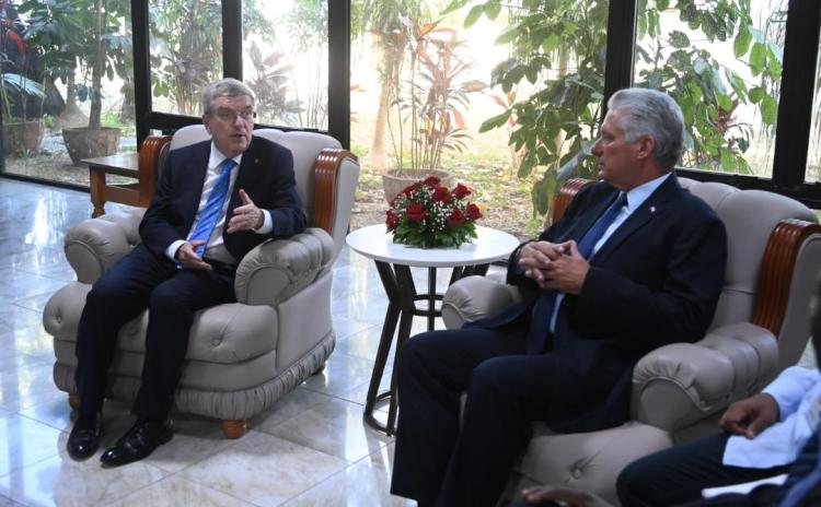 Díaz-Canel consideró un honor recibir al presidente del COI, y reiteró el compromiso de Cuba con el movimiento olímpico internacional; el deporte puede tender muchos puentes, manifestó el jefe de Estado cubano.