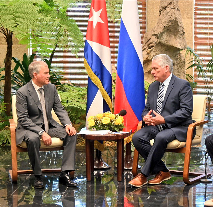 Volodin agradeció a Díaz-Canel por la acogida y le trasladó saludos y deseos de buenaventura enviados por el presidente ruso, Vladimir Putin, refirió la Presidencia en otro tuit.