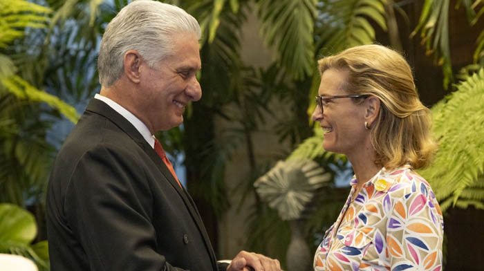 La Habana.- Miguel Díaz-Canel, Presidente de Cuba, ratificó hoy a la secretaria general de la Unión Internacional de Telecomunicaciones (UIT), Doreen Bogdan-Martin, el apoyo de la isla a ese organismo especializado de las Naciones Unidas para las tecnologías de la información y la comunicación.