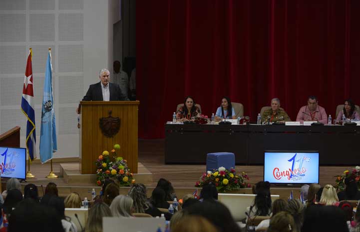 Ante todo, nuestras felicitaciones para Teresa por su merecida reelección como secretaria general de la organización de las mujeres cubanas, y a las compañeras elegidas para la Dirección de la FMC, de su Comité Nacional y Secretariado, que son una excelente muestra de la mujer cubana (Aplausos).