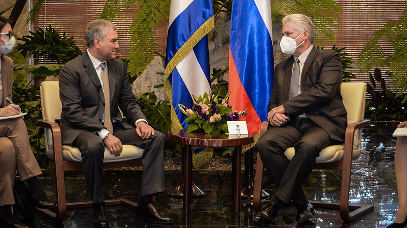 Durante el encuentro, el mandatario cubano destacó el excelente estado de las relaciones entre ambas naciones, al tiempo que reiteró la voluntad de consolidar el alto nivel de diálogo político y los intercambios en sectores de interés común, incluida la esfera parlamentaria. Agradeció la resolución contra el bloqueo de los Estados Unidos a la Isla, que anualmente emite la Duma Estatal, así como la ayuda humanitaria recibida desde la Federación para mitigar los efectos de la pandemia.