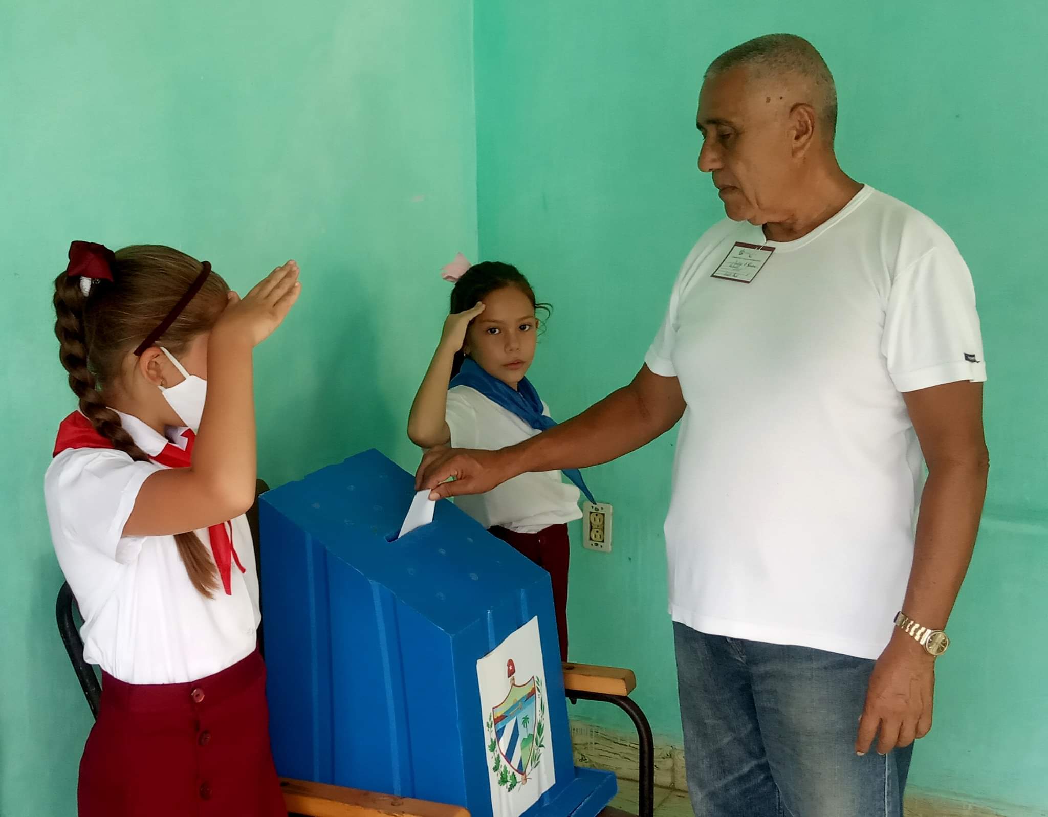 Puerto Padre, Las Tunas.- Las sábanas poco hicieron para retener en la cama a María Carla este domingo. Con el impulso motivacional de la madre, más el compromiso individual por el proceso social, desde horas tempranas la adolescente custodia la urna del centro electoral de su demarcación.