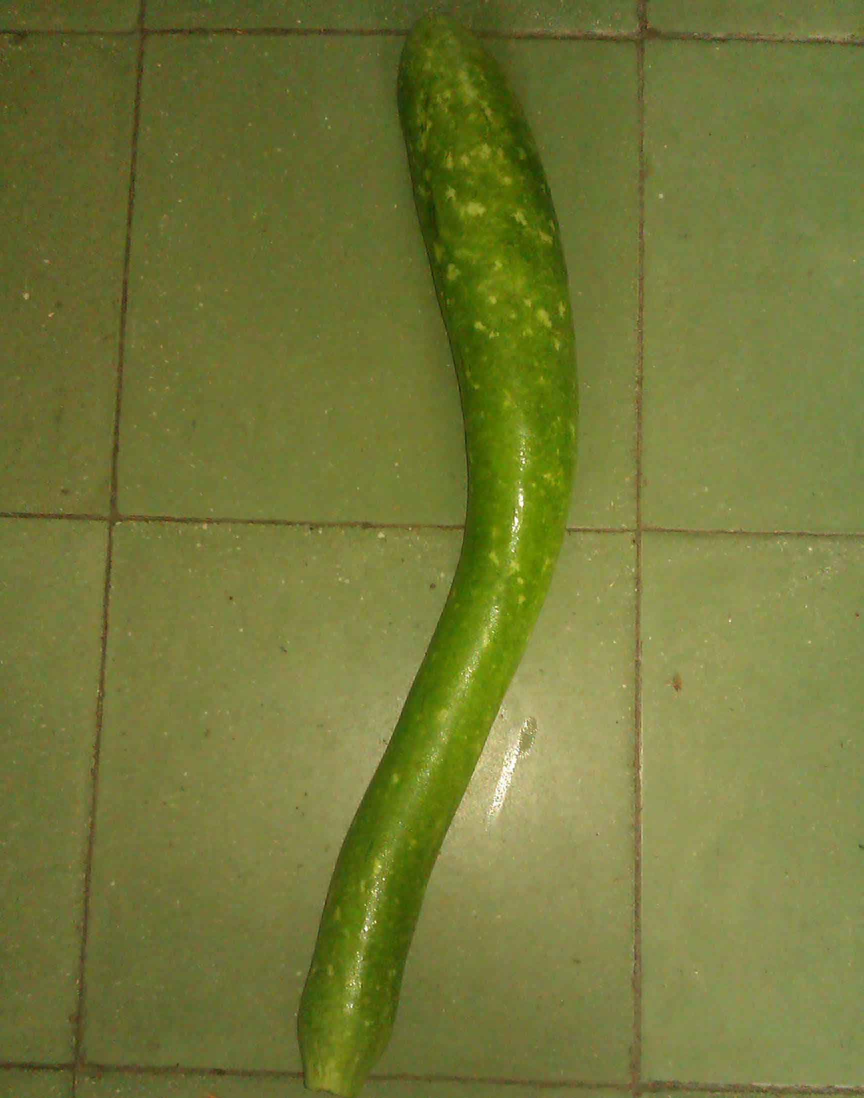 Con certeza Onel Batista Ávila, el administrador, no conoce el nombre de la variedad. Más una búsqueda en Internet me lleva a decir que no hay nada más parecido a estos ejemplares tuneros que el pepino largo de China. Según él, algunos clientes de Guinea, África, que lo visitaron, le dijeron que allá habían visto frutos como estos.