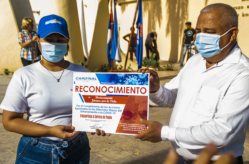 Las Tunas.- Los resultados significativos y acciones de alta relevancia social, durante el enfrentamiento a la Covid-19, de los trabajadores de la Empresa de Transporte de Pasajeros y Cargas Generales (Cardinal), de esta provincia del oriente cubano, fueron premiados con la Bandera de Proeza Laboral en ceremonia efectuada en la Plaza Martiana de la cabecera territorial.