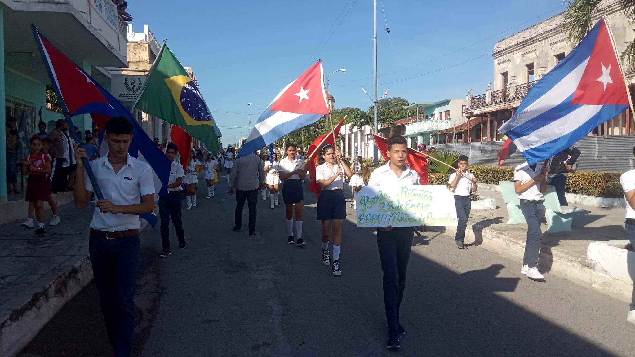 Puerto Padre, Las Tunas.- De colores y alegría, pioneros de los diversos niveles de enseñanza inundaron la avenida Libertad, en Puerto Padre, con el festival de bandas rítmicas como saludo al Primero de Mayo.