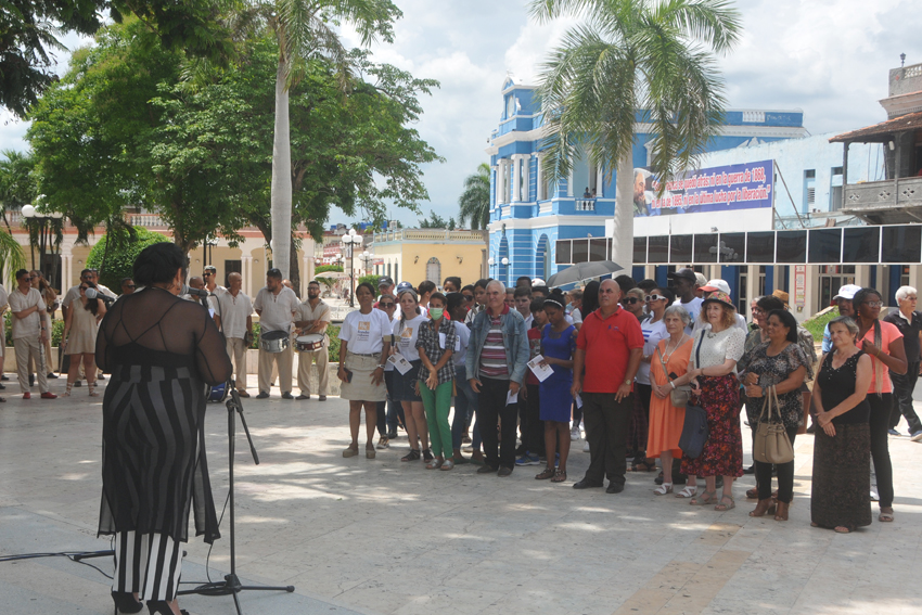 Las Tunas.- José Martí iluminado de cara al sol en el sitio que le rinde tributo permanente en el corazón de esta ciudad, con la presencia de estudiantes, representantes del Instituto de Amistad con los Pueblos, artistas y tuneros en general, fue una de las maneras de recordar hoy su caída en combate.