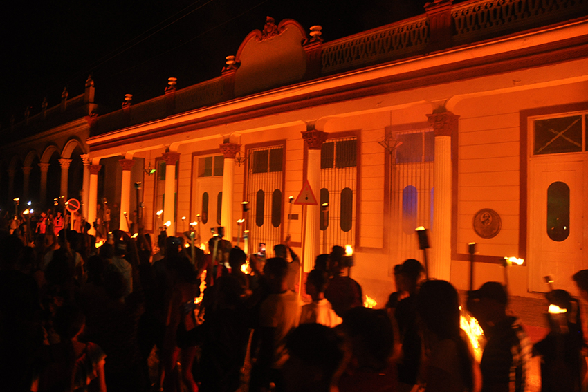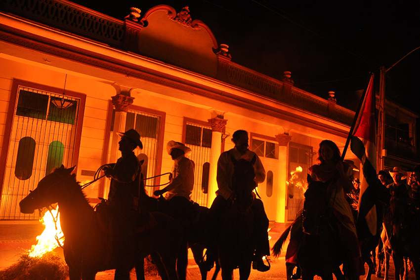 Las llamas crepitaron en el escenario, símbolo del incendio que antaño azotó la ciudad y entre el fuego se presenció una cabalgata. Parecía que iba Vicente García liderando a sus tropas mambisas.