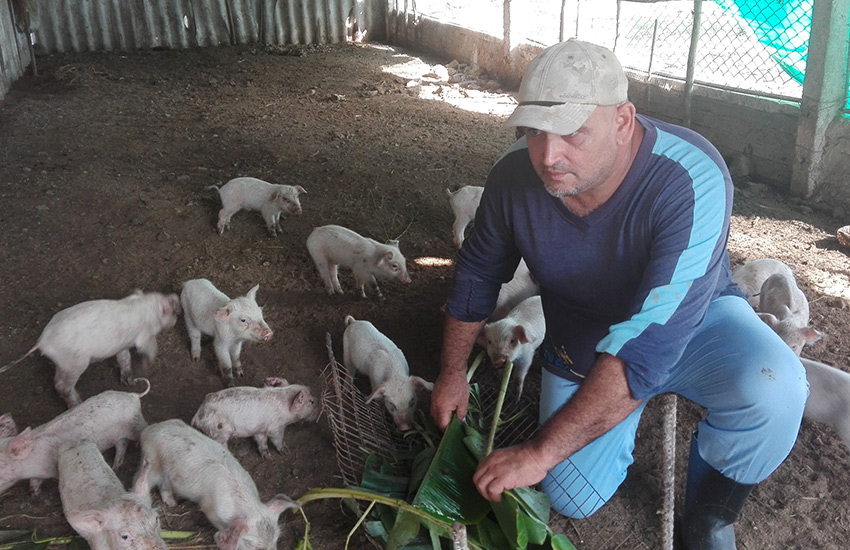 “Hemos logrado mantener el funcionamiento del módulo con los subproductos de cosechas y las plantas proteicas que sembramos. Producimos pienso a partir de esas plantas y cosechas de maíz y frijol, más restos de yucas. La caña la molemos y se la damos fresca o la deshidratamos para guardar y evitar el proceso de fermentación.