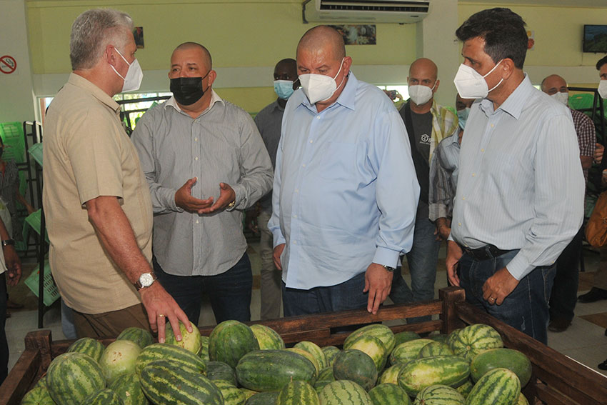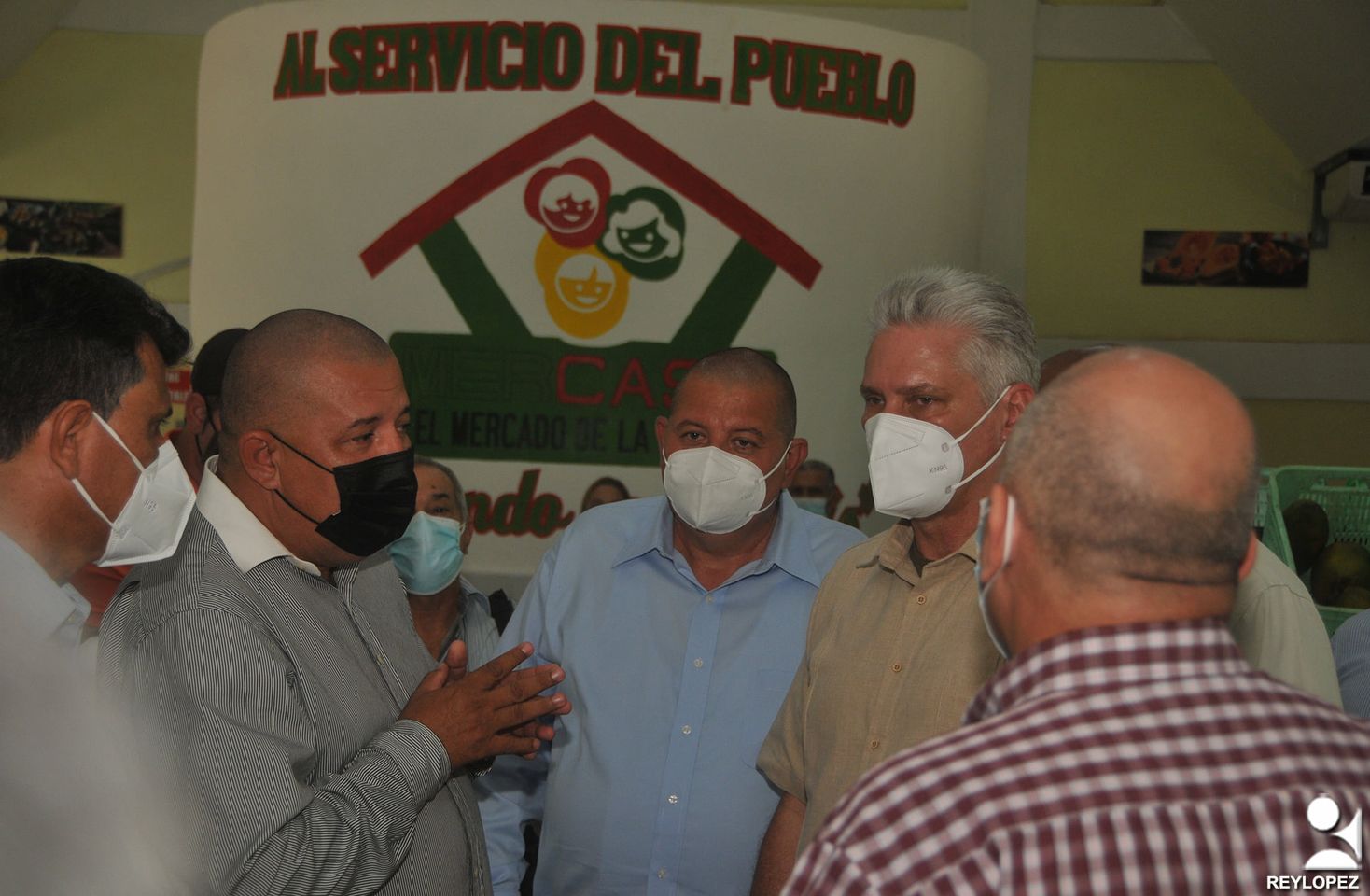 Las Tunas.- Al interior del mercado agropecuario urbano El Mambí, el primer secretario del Comité Central del Partido y presidente de la República, Miguel Díaz-Canel Bermúdez, intercambió con su líder, el usufructuario Argel Frank Fundora Acosta, sobre el funcionamiento de su mediana empresa Mercasa y los retos venideros en el contexto económico tunero.