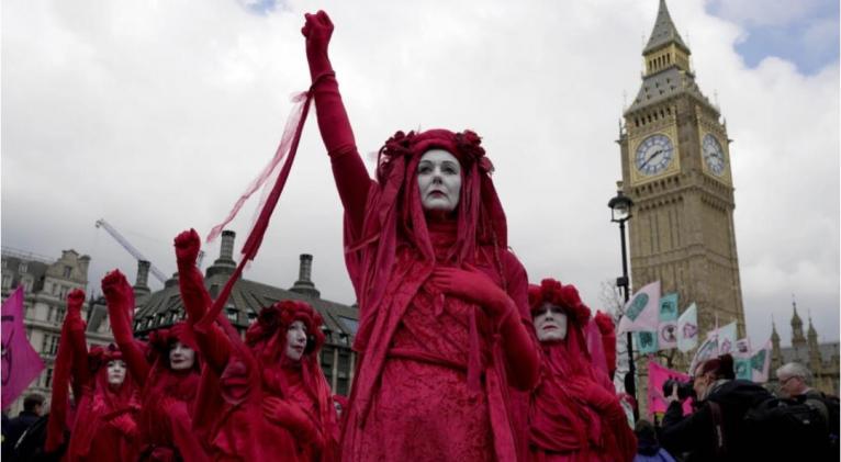 Defensores del medio ambiente se reunieron en las afueras del Parlamento británico en la víspera del Día de la Tierra para urgir acciones en contra del calentamiento global, mientras que ciudadanos a lo largo y ancho del planeta plantan árboles y recogen basuras para marcar la celebración número 54 de este día.