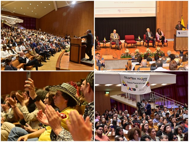 Bogotá.- El presidente de Colombia, Gustavo Petro, junto a su ministro de Relaciones Exteriores, Álvaro Leyva, participó hoy en el encuentro con la diáspora colombiana en la capital alemana.