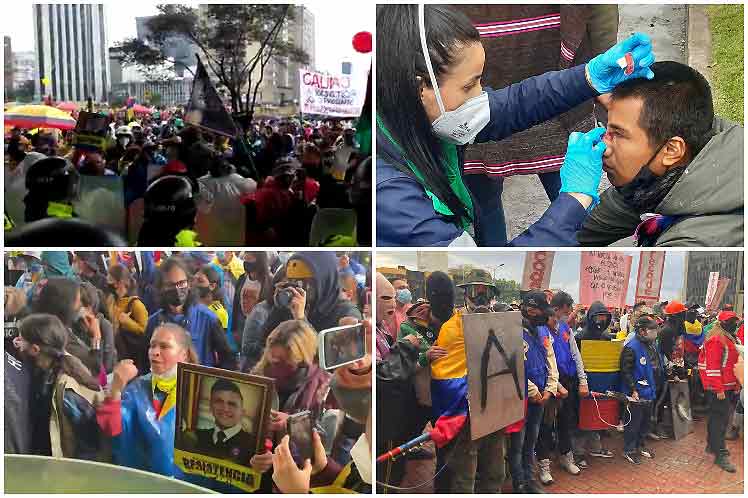 En Medellín, Armenia, Cali, Bogotá, Cundinamarca, Bucaramanga, Popayán y otras zonas los manifestantes exigieron el cese de la violencia contra las movilizaciones pacíficas y la negociación del pliego de demandas propuesto por el Comité Nacional de Paro.