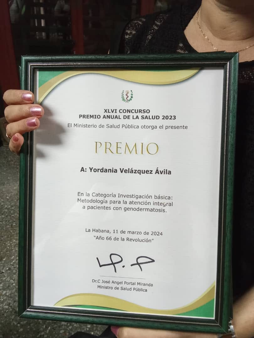 Conversamos con Yordania Velázquez Ávila, especialista de Segundo Grado en Dermatología y distinguida recientemente con un Premio Anual de Salud y mención en la categoría de innovación tecnológica, altísimos reconocimientos del país
