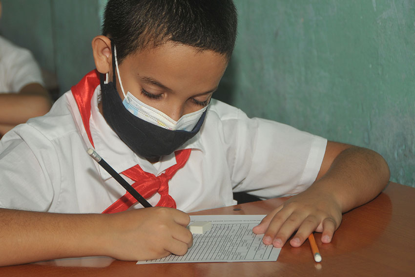 En ajuste a la programación concebida, en la semana en curso, realizan controles parciales en Lengua Española y Matemática para los años terminales, en tanto otras asignaturas como Historia y Cívica efectúan trabajos prácticos, con el añadido de uno de Ciencias Naturales para el penúltimo año de la Primaria y uno integrador entre esta última materia y Geografía para los alumnos que se despiden de esta enseñanza.