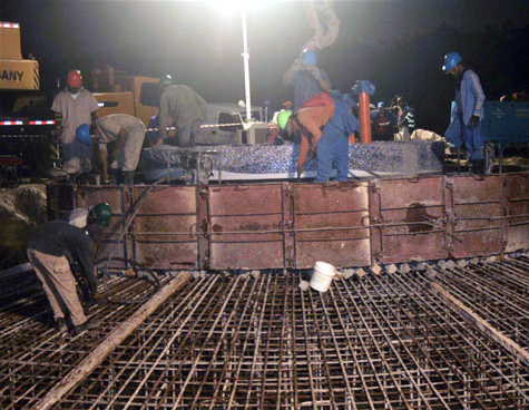 Barrera Pupo explica paso a paso el proceso de fraguado del hormigón, el cual depende en su mayoría de reacciones químicas exotérmicas y del aumento o disminución de las temperaturas ambientales. “La fundición integral de estas bases se realiza de 11:00 de la mañana a 1:00 de la madrugada. El Centro Meteorológico Provincial nos asesora para laborar en los días y horarios de menores temperaturas porque si en el proceso de fraguado se incrementan los valores tenemos que acelerarlo de manera tal que no se provoque una retracción”.
