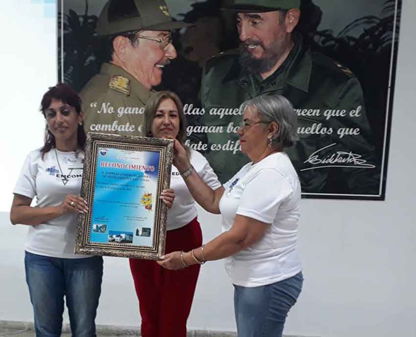 ![]() Emcomed es reconocida por Odalis Batista Pérez (al centro), secretaria general del Comité provincial de la CTC. |