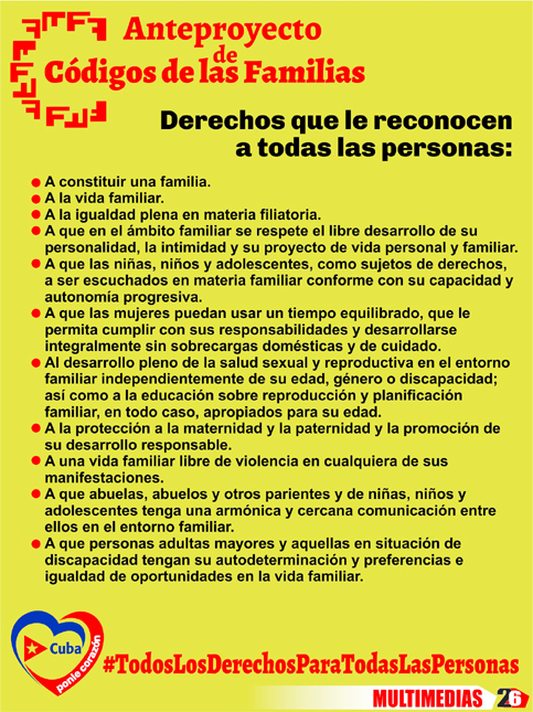 “El Código de 1975 con sus modificaciones, afirma, fue un hito en su momento para Cuba y América Latina”. Sin embargo, acota que a menudo solo invocando el interés superior de los infantes es que pueden hoy solucionarse cuestiones relacionadas, por ejemplo, con la violencia intrafamiliar. De aprobarse este anteproyecto, asevera, habría caminos más expeditos. “No hay nada como tenerlo en la Ley”, insiste. Otro asunto relevante es el equilibrio que establece entre los afectos y las relaciones de consanguinidad. “Eso tiene un valor extraordinario. Además, este Código desarrolla derechos que ya están consagrados en nuestra Constitución”, expresa.
