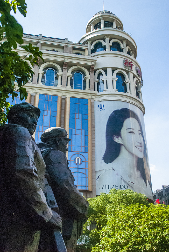 Es verano y el calor se siente apenas emprendes el camino por la Nanjing Road. Esta es una vía peatonal que comienza en la Plaza del Pueblo, un verde parque con centro en el Monumento a los Mártires del 30 de mayo de 1925, que rinde tributo a los estudiantes caídos en esta zona, masacrados por la Policía local mientras protestaban por la injerencia extranjera.