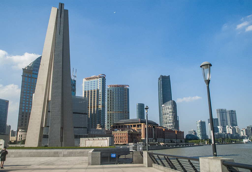 En frente, el cuadro se completa con una vista impresionante de los emblemáticos edificios del distrito financiero de Pudong: el Shanghái World Financial Center, uno de los rascacielos más grandes del mundo con sus 492 metros de altura; y las torres Jin Mao y la de televisión Perla de Oriente. En sus formas, todos parecen armados a placer por las manos de un infante colosal.