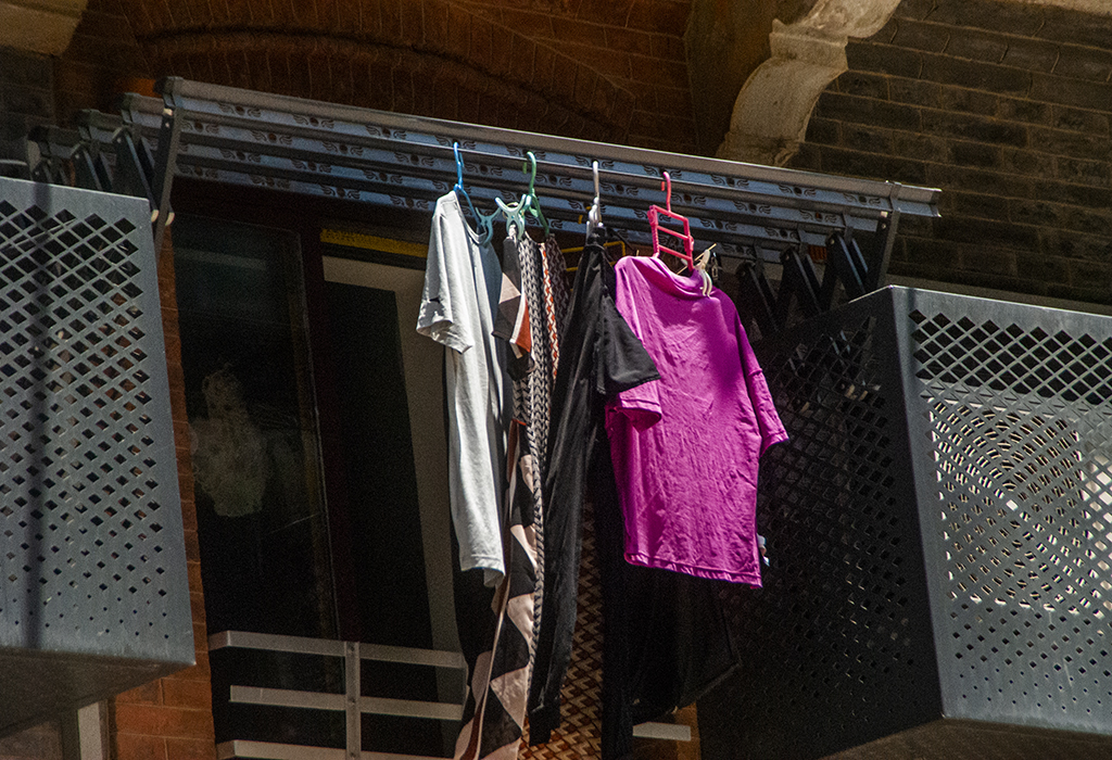 Durante el recorrido contemporáneo se aprecian lo mismo tiendas de marcas exclusivas de vestuario, cosméticos o teléfonos móviles, que simples comercios de alimentos ligeros y algún que otro edificio de viviendas, en cuyos balcones sus inquilinos cuelgan ropa para secarla al sol. Los transeúntes se refugian en la sombra y mitigan los 34 grados centígrados de temperatura ambiente con abanicos, pequeños ventiladores portátiles, sombrillas, sobreros y mucha agua. En los establecimientos comerciales sus dependientes se juntan frente a aparatos de climatización más grandes, acoplados a tubos que emiten aire frío.
