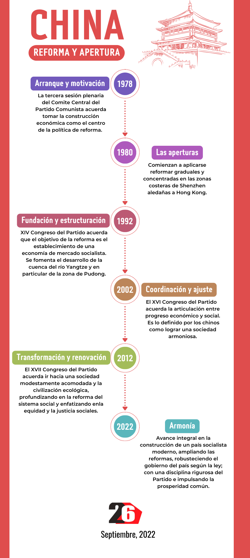 Hubo seis reformas transcendentales que impulsaron el desarrollo económico de China, enumera la también subtitular de la Facultad de Estudios Hispánicos y Portugueses: en 1980, la del sistema de responsabilidad por contrato rural que inició su activación; luego la del sistema de precios en 1989; y en la década de 1990 la de los medios de subsistencia y de producción. Seguidas de la reforma del sistema de derechos de propiedad de las empresas estatales medianas que privatizó las entidades estatales de baja productividad y en sectores no estratégicos. A continuación, en 1994, acaeció la reforma del sistema financiero y la ya mencionada sobre el impuesto agrícola.