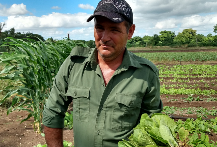 Colombia, Las Tunas. This Lázaro Peña credit and services cooperative associate has 9.73 hectares in usufruct, which he dedicates to various crops and his main product, tobacco. In the space devoted to seedbeds, the greenery prevails, and the health of the plantations is evident.