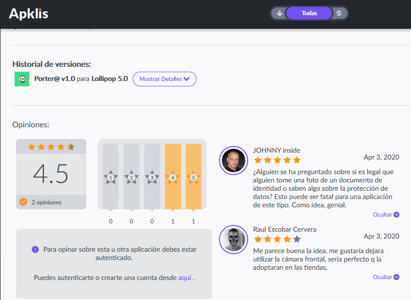Pero lo verdaderamente relevante es que no queda claro qué ocurrirá con ese volumen de información personal que estaría siendo almacenada por quienes la usen. De hecho, en los foros de Apklis ese fue uno de los primeros cuestionamientos a Porter@: “¿Alguien se ha preguntado sobre si es legal que alguien tome una foto de un documento de identidad o saben algo sobre la protección de datos? Esto puede ser fatal para una aplicación de este tipo. Como idea, genial”, dijo uno de los comentaristas.