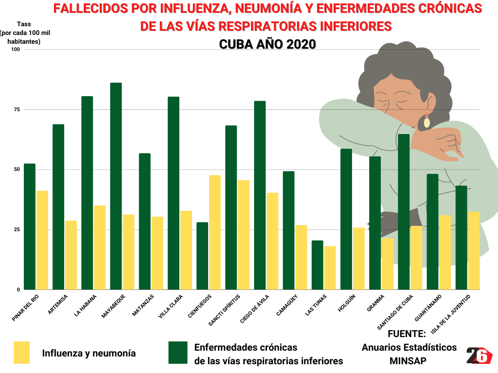 A pesar de que al cierre del mes de junio aquí se registraron cinco fallecidos menos que en igual fecha del año anterior, en el actual calendario las infecciones respiratorias agudas, específicamente por influenza y neumonía, y las afecciones cardiovasculares pasaron a ocupar los primeros puestos de las que ocasionaron la mortalidad.