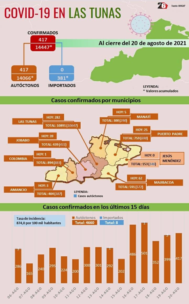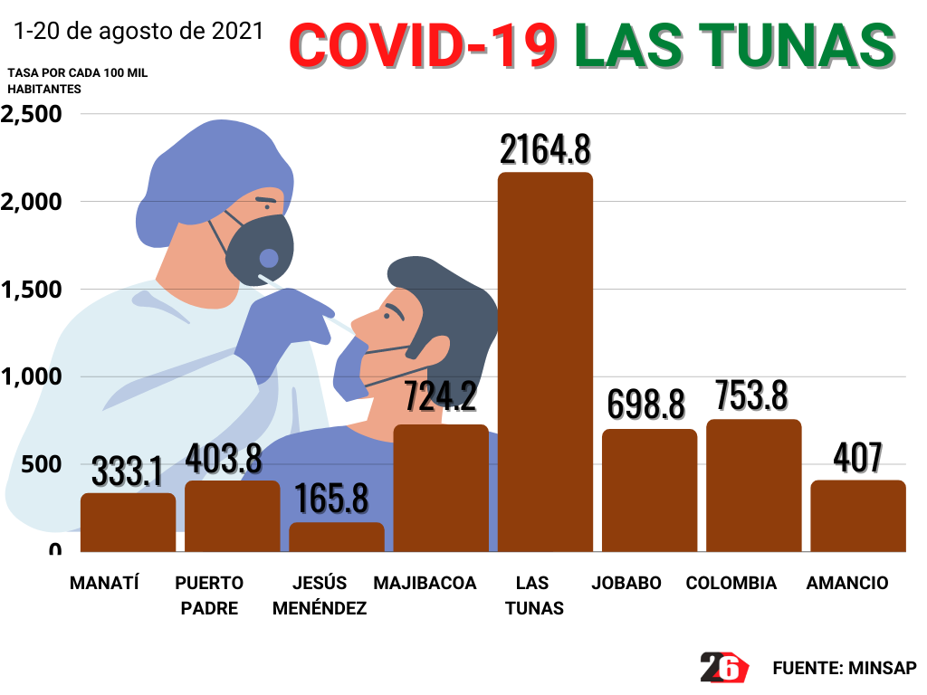 En lo que va de agosto, la tasa de incidencia de la Covid-19 por cada 100 mil habitantes en el municipio de Jesús Menéndez es la más baja con respecto a la del resto de los territorios tuneros. Sin embargo, en ese mismo lapso se han notificado allí 80 nuevos positivos autóctonos, más de la mitad de todos los detectados en esa localidad desde el inicio de la pandemia en marzo del 2020. Con lo cual se evidencia un incremento de la transmisión en esa zona del norte de la provincia.