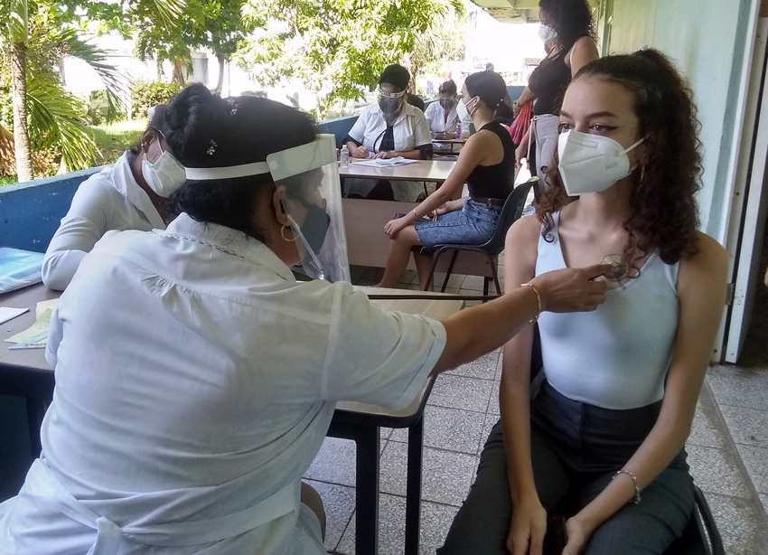 Las acciones, lideradas desde la Atención Primaria, encuentran escenarios en centros escolares del territorio habilitados para estos fines. Otros locales, como la clínica estomatológica 3 de Octubre, brindan sus locales también para la consulta previa, la vacunación y el tiempo de espera en vigilancia epidemiológica.