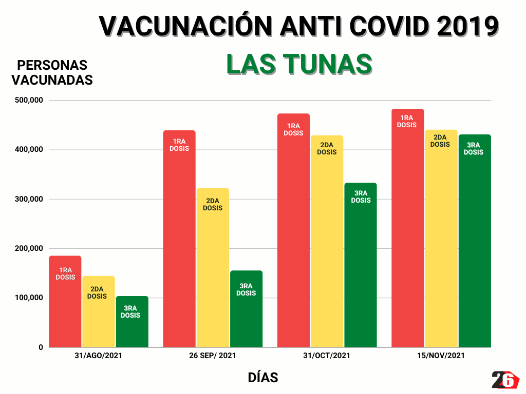 Respecto a la inmunización en el resto de la población informó que aquí 482 mil 567 tuneros se han beneficiado con la primera dosis, 440 mil 148 con la segunda y 430 mil 581 con la tercera, cifra que representa más del 86 por ciento de las personas previstas. Entretanto, acontece la inmunización con las dosis de refuerzo a trabajadores de Salud, ya se administró a más de nueve mil 300.