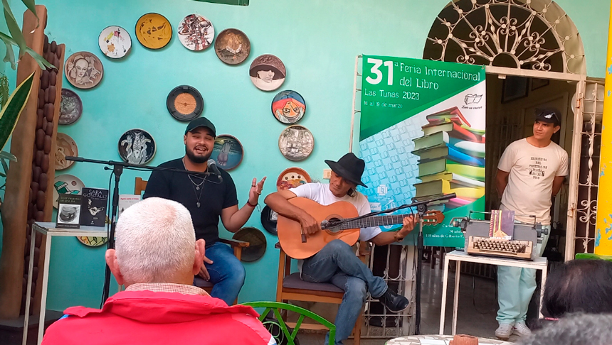 Freddy estaba al acecho, puso la melodía y Marcel Pérez la voz a la canción más bella de Laffita: Carmen. Luego él continuó a guitarra y poesía y se hizo la tarde con la improvisación del tunero Dimitri Tamayo y el batabanoense Juan Carlos García Guridi, dejándonos el dulce sabor del repentismo como género vivo.