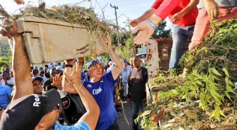 "Estamos haciendo, con esa convicción guevariana, un trabajo voluntario, enfrentando las afectaciones de un poderoso huracán que pasó por nuestro país, que afectó a cinco provincias, particularmente con un grupo de daños severos aquí en La Habana", afirmó el primer secretario del Comité Central del Partido, quien pidió tener en cuenta que el fenómeno de los huracanes se va a seguir incrementando, y que cada día tenemos que estar más preparados para enfrentar este tipo de evento meteorológico.