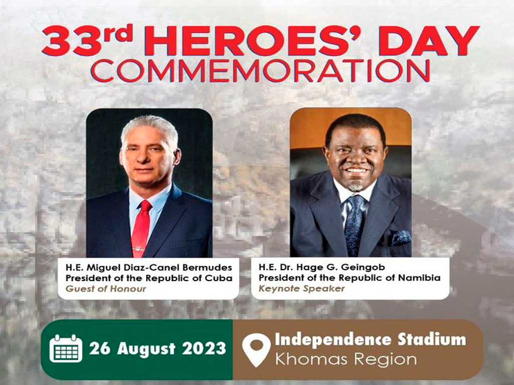Díaz-Canel es, en esta 33 celebración que se realizará en el capitalino Estadio de la Independencia, el invitado de honor del acto, en el cual las palabras centrales serán pronunciadas por Geingob, según el programa.