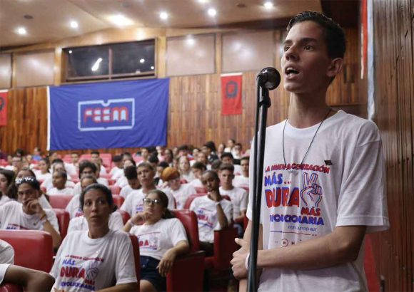 Bajo el lema "Aquí con Cuba", la asamblea profundizó en planteamientos de los más de 270 000 estudiantes afiliados de la organización, referentes a la vida interna de las escuelas, la recreación, el acceso a las actividades y la importancia de una educación de calidad a la altura de las exigencias de los tiempos actuales.