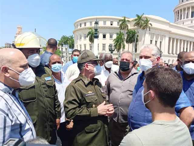El mandatario estuvo antes en el sitio del siniestro, en el centro de La Habana, y en el hospital Hermanos Amejeiras.