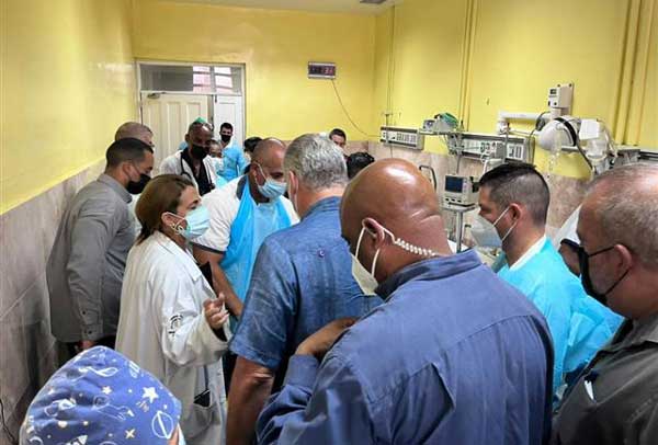 La Habana, Cuba.- El presidente cubano, Miguel Díaz-Canel, comprobó en el capitalino hospital Calixto García la atención a las víctimas de una explosión accidental que parcialmente destruyó el hotel Saratoga.