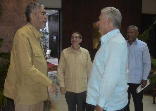 La Habana.- El Primer Secretario del Comité Central del Partido Comunista de Cuba y Presidente de la República, Miguel Díaz-Canel Bermúdez, sostuvo en la tarde de ayer un encuentro en el Palacio de la Revolución con José Miguel Mejía Abreu, secretario general del Partido Movimiento Izquierda Unida, de República Dominicana, a quien agradeció por el apoyo constante que ha ofrecido a Cuba en diferentes escenarios.